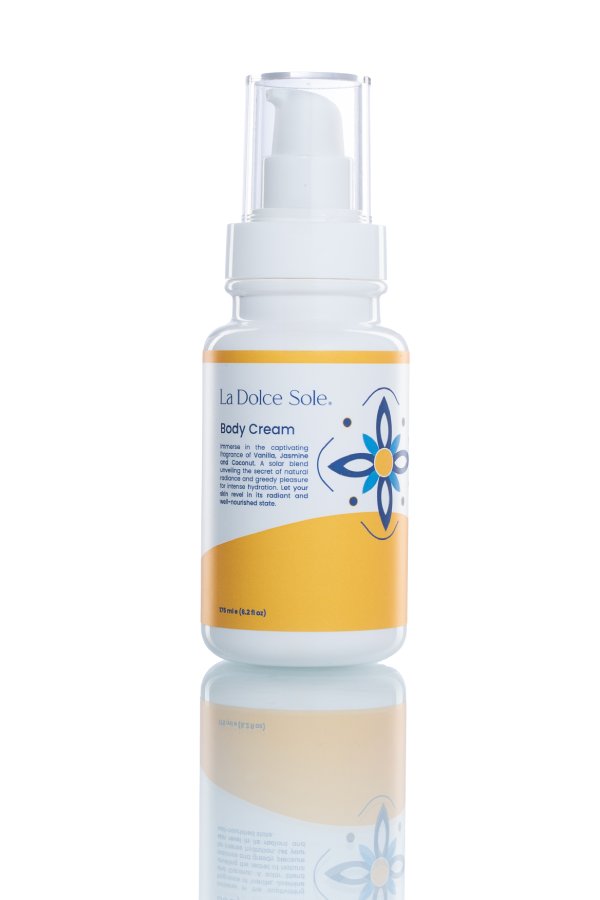 La Dolce Sole body cream features a light texture that delicately scents the skin. Formulated with shea butter and sweet almond oil, this hydrating lotion reveals/provides smooth and radiant skin.